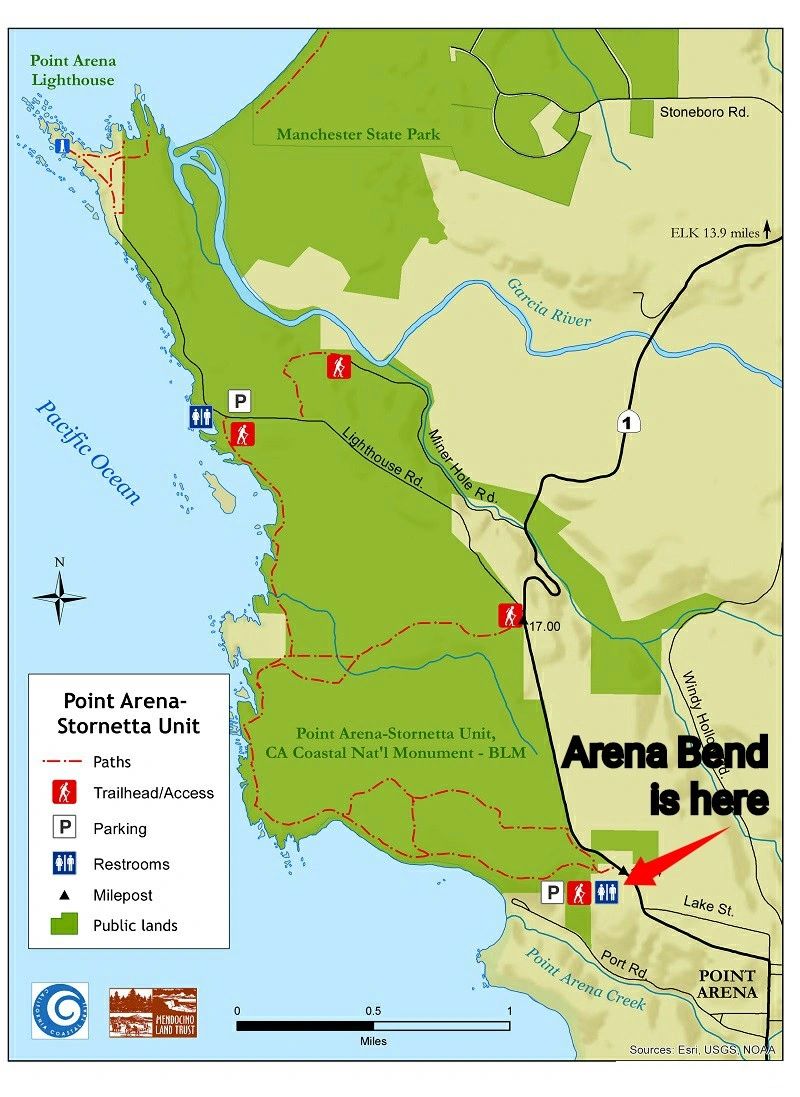 Arena Bend is two doors from the Stornetta Lands trailhead. You can't beat this location for hiking along the coast.